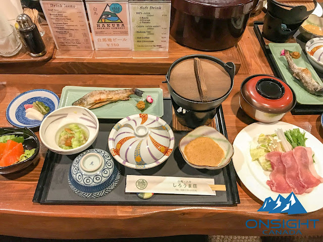 | 典型的な夕食。 鮎の塩焼きは苦戦する外人さんは若干おられました。 好き嫌いが別れる一品ですね |
